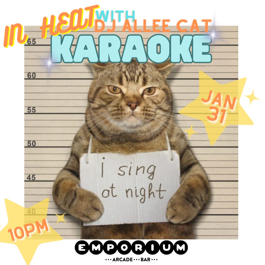 DJ Allee Cat presents In Heat Karaoke. She brings the cat ears and the jams, you bring the song in your heart and a few friends.What’s better than getting drunk and singing in front of strangers on a Wednesday night?!?