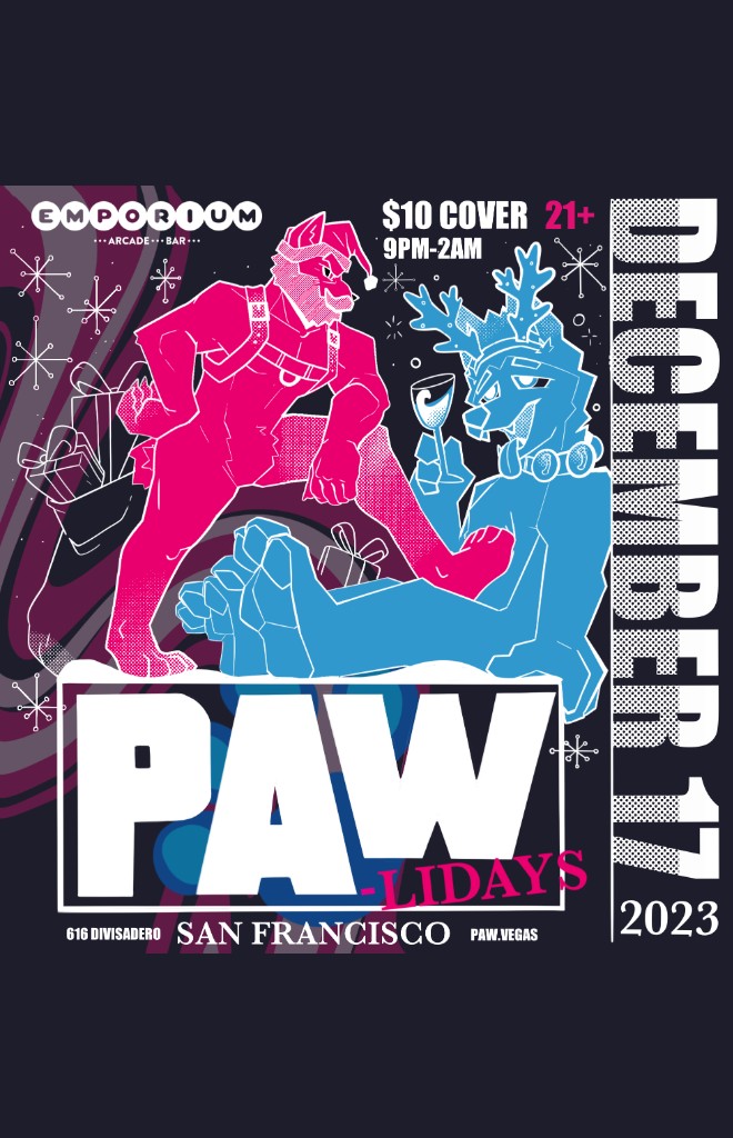 Party Animals West Presents: PAW: San Francisco- PAWlidays Edition. PAW is the West Coast’s largest adult furry club night. Show us your WILD side. Fursuits AND gear Encouraged!