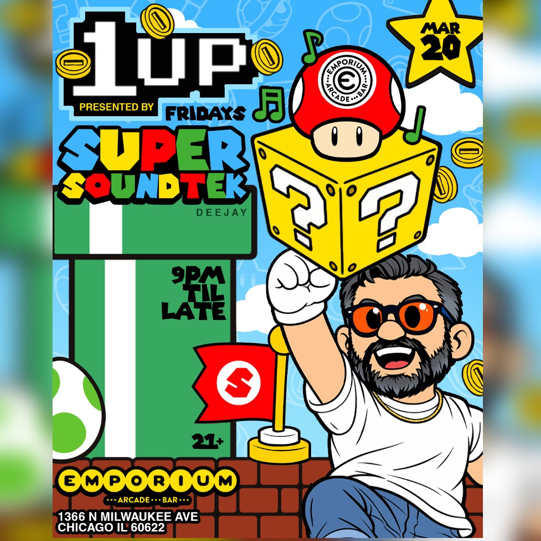 Chicago Wicker Park 1366 N milwaukee ave, Chicago, IL, United StatesGet active on with DJ Super Soundtek with 1up Fridays! Bringing you pure top 100 club edits, UK Funky Garage, Hip-Hop, R&B and pop style all night long!