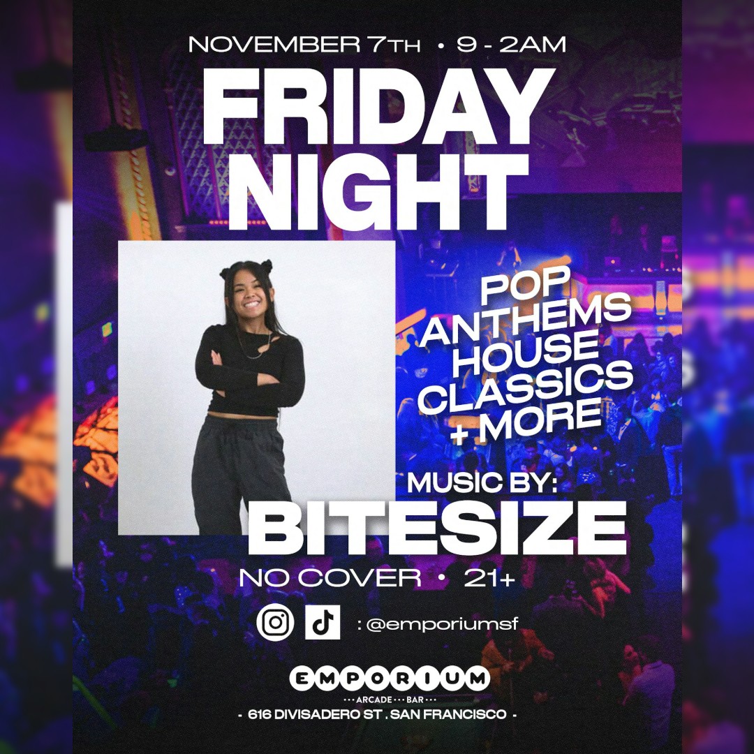 San Francisco 616 Divisadero St, San Francisco, CA, United StatesEmbrace the vibes at Emporium. Catch Nate Rioz dropping beats all night alongside some of the best arcade games and drinks around! No cover charge, 21+