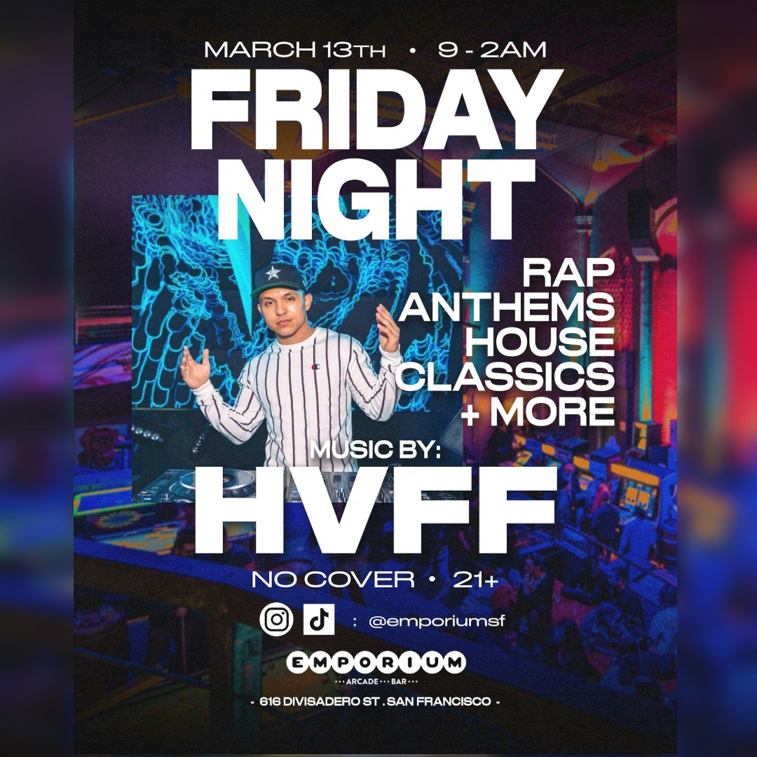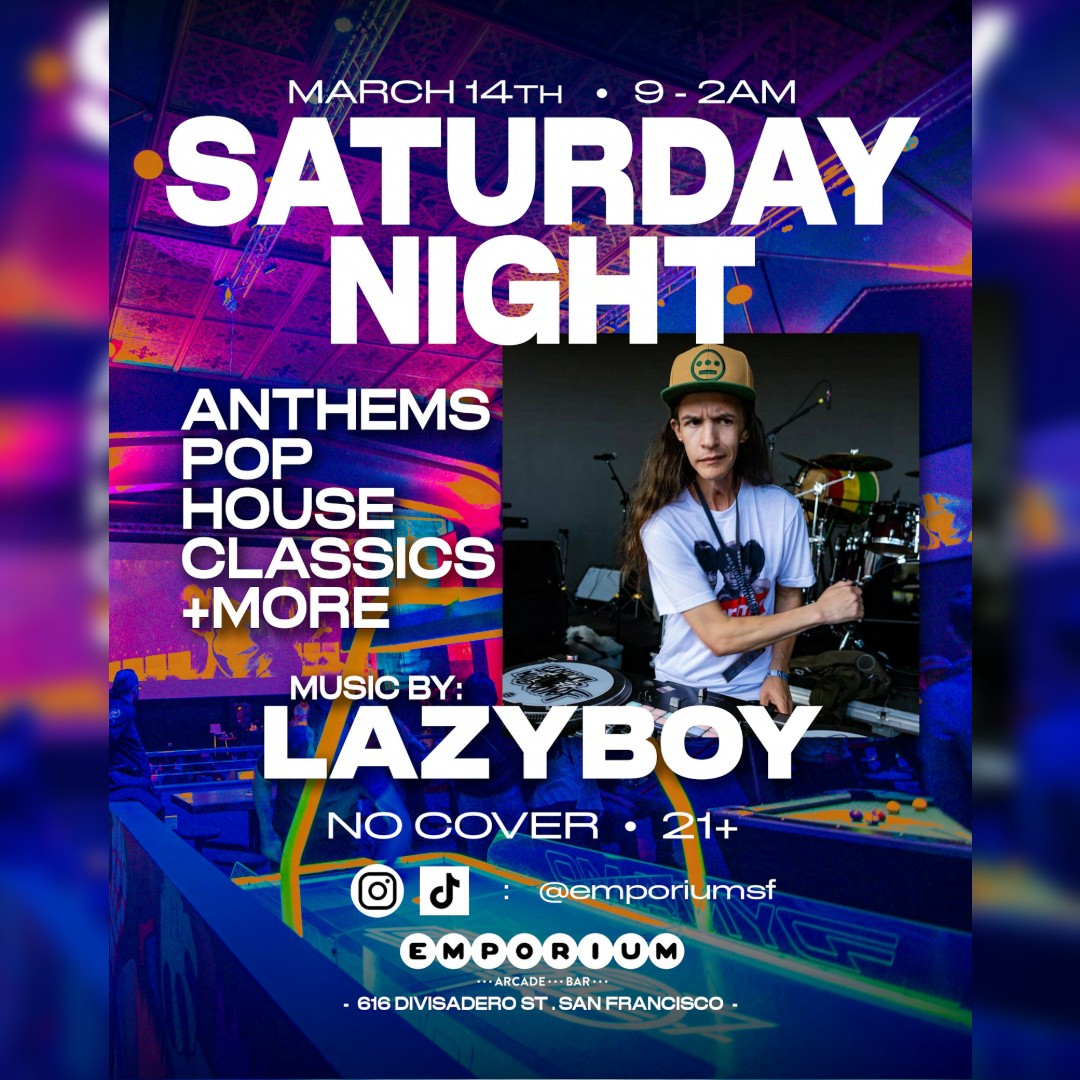 San Francisco 616 Divisadero St, San Francisco, CA, United StatesEmbrace the vibes at Emporium. Catch Nate Rioz dropping beats all night alongside some of the best arcade games and drinks around! No cover charge, 21+