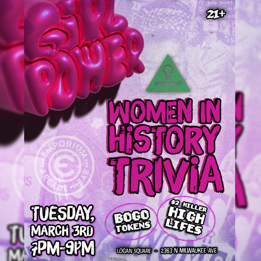 Test your knowledge at Women in History Trivia w/ Whaddayaknow and celebrate groundbreaking women, historic moments, and Girl Power. |