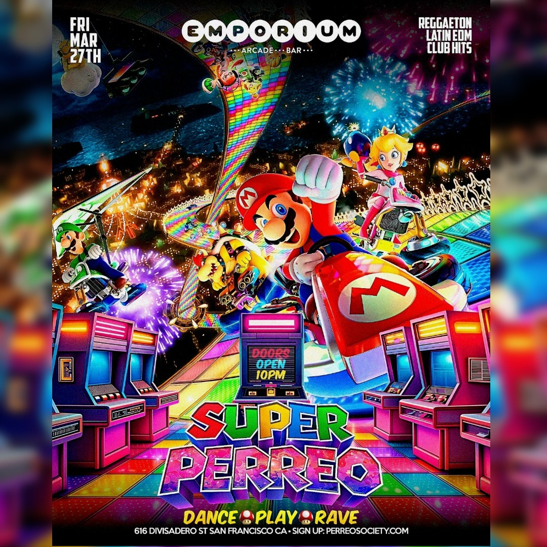Welcome to Super Perreo! Where classic and modern arcade nostalgia meets high-energy Latin nightlife. Step into a vibrant, game-inspired universe filled with next level decor and production. Where you'll hear the best of Reggaeton, Latin EDM, and Party Hits + more anthems all night long. Sounds by Bay Area legend & World Champion DJ: J ESPINOSA |