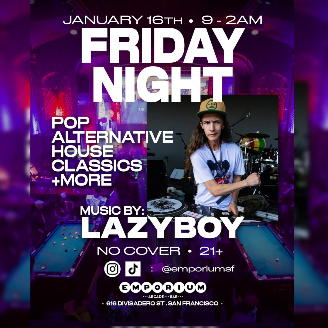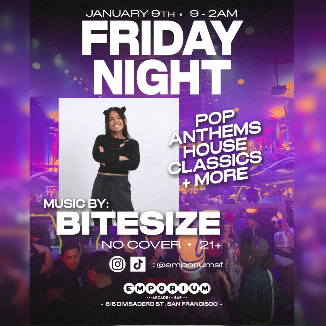 San Francisco 616 Divisadero St, San Francisco, CA, United StatesEmbrace the vibes at Emporium. Catch Bitesize dropping beats all night alongside some of the best arcade games and drinks around! No cover charge, 21+
