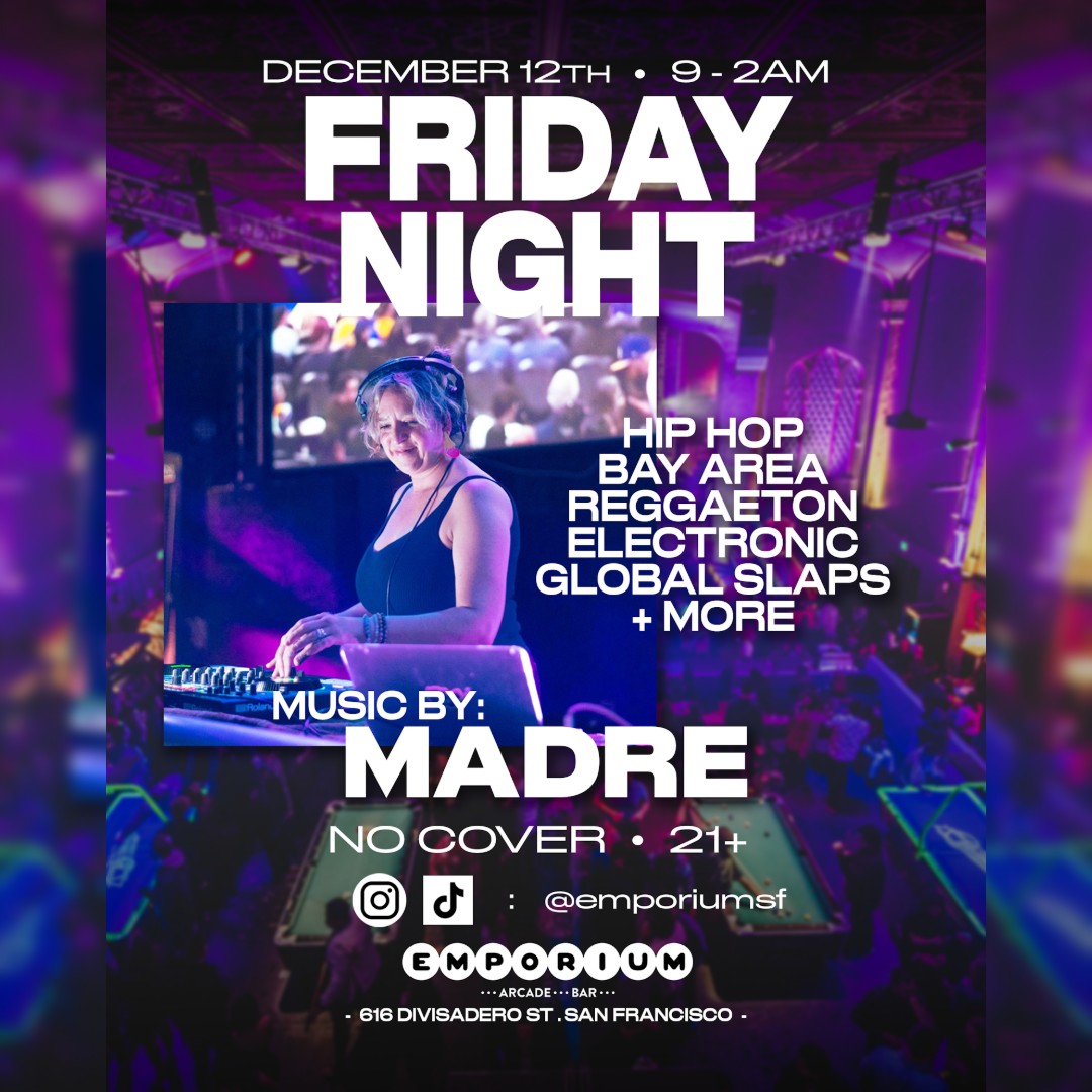 San Francisco 616 Divisadero St, San Francisco, CA, United StatesEmbrace the vibes at Emporium. Catch maDRE dropping beats all night alongside some of the best arcade games and drinks around! No cover charge, 21+