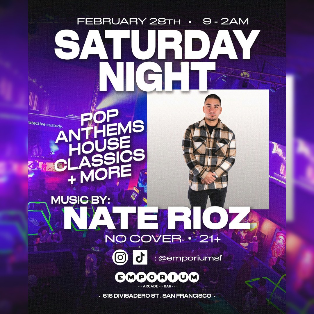 Embrace the vibes at Emporium. Catch Nate Rioz dropping beats all night alongside some of the best arcade games and drinks around! No cover charge, 21+