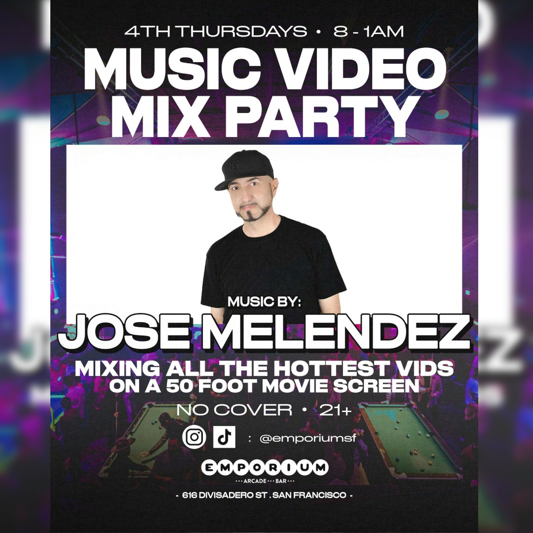 San Francisco 616 Divisadero St, San Francisco, CA, United StatesBay fave Jose Melendez drops the hottest video mix in The City on our 50-foot projector screen. Every 3rd Thursday, no cover!